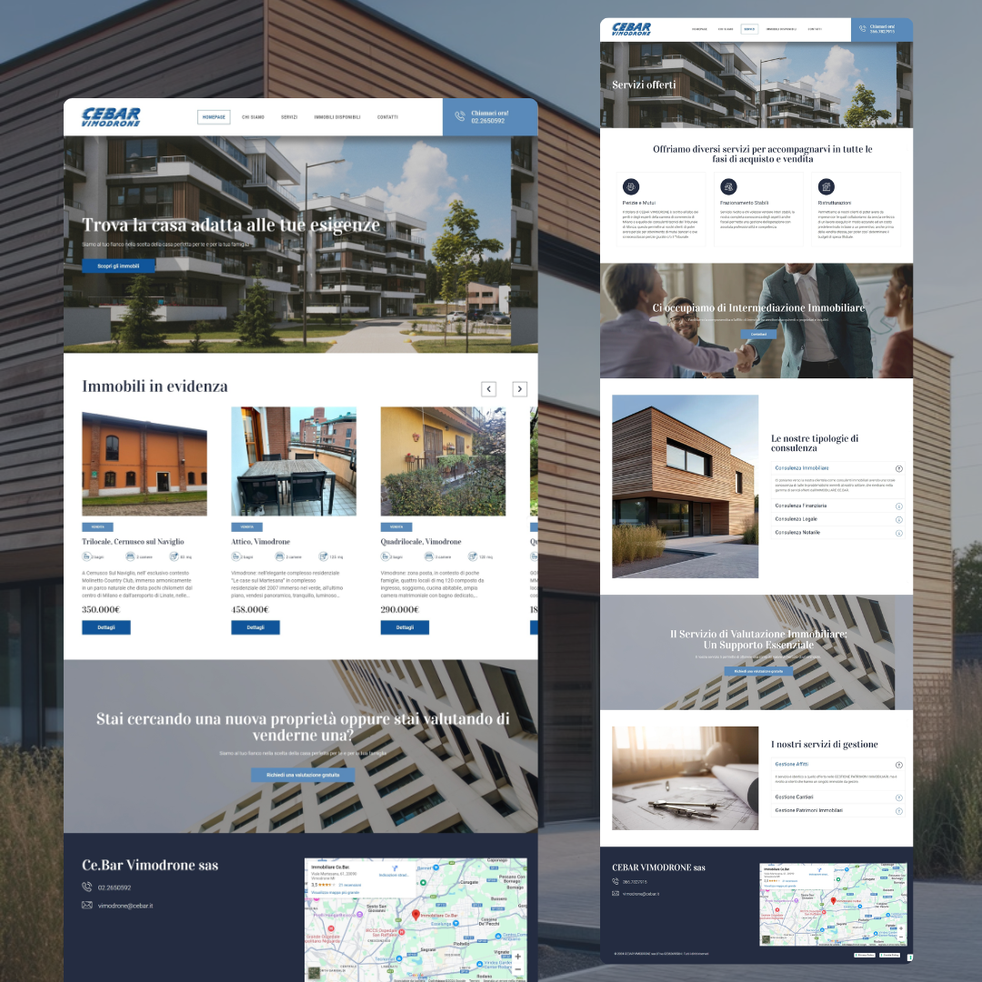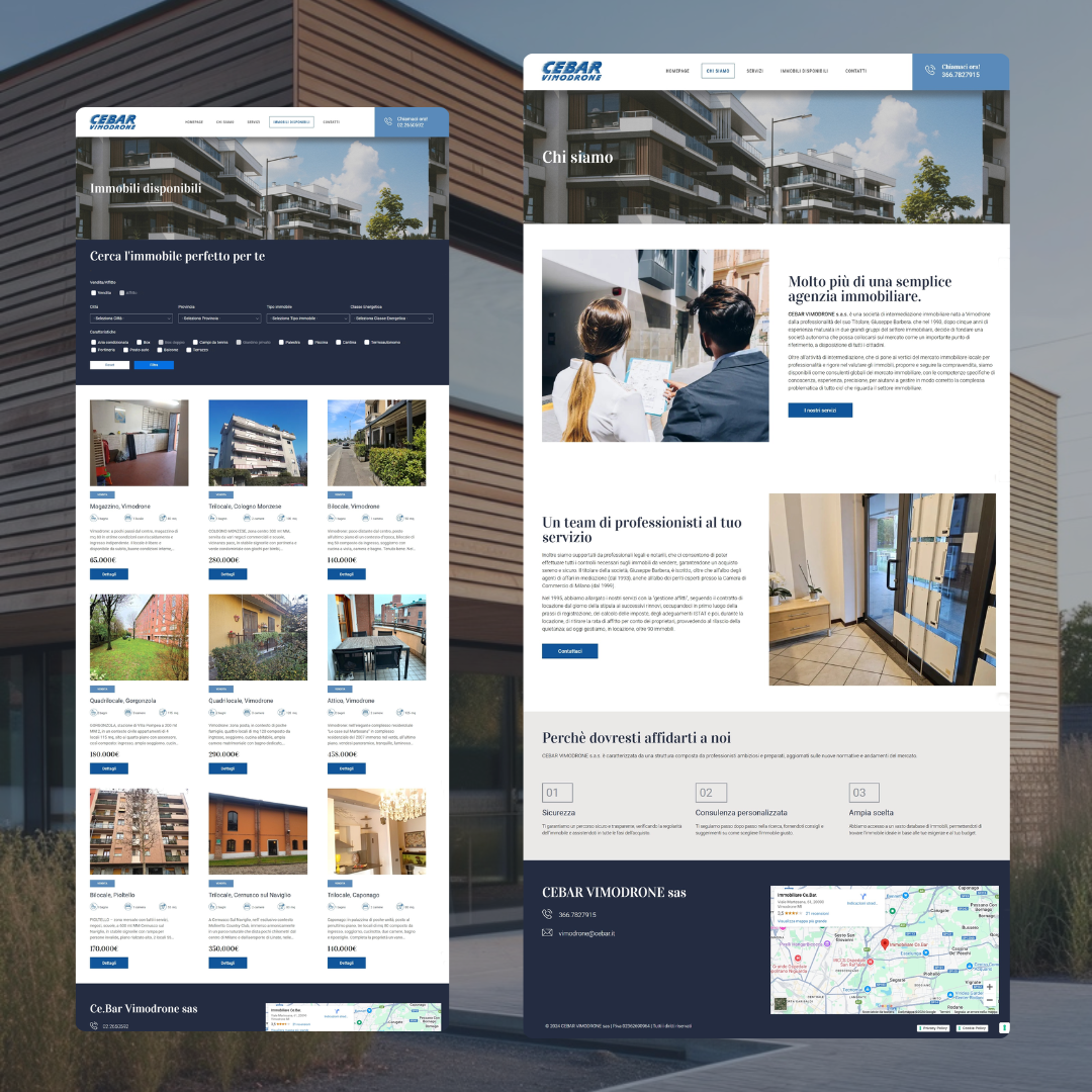 CEBAR Vimodrone, una rinomata agenzia immobiliare con sede a Vimodrone, si è affidata alla mia competenza per sviluppare un sito web che unisse un design pulito e accattivante a funzionalità avanzate per la gestione e la ricerca degli immobili. Il progetto aveva l’obiettivo di offrire una piattaforma intuitiva sia per i clienti finali alla ricerca della casa ideale, sia per il team dell’agenzia che necessitava di uno strumento semplice per aggiornare le proposte immobiliari.